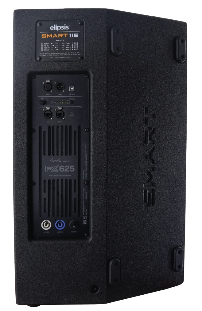 El sistema Smart-115 incorpora un nuevo Bi-amplificador con arquitectura clase D, fuente conmutada y procesador digital con 8 presets listos para utilizarse según la aplicación.